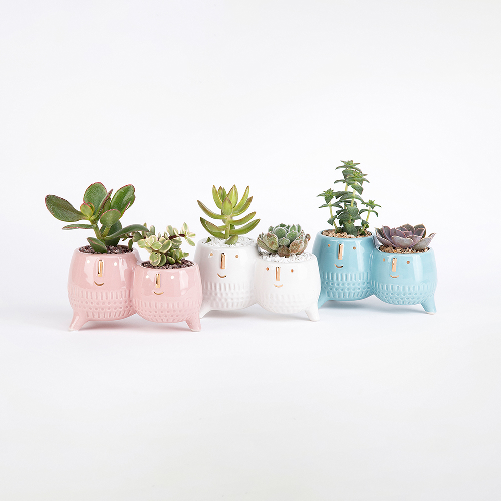 Κάκτοι/Παχύφυτα σε διπλό πήλινο 5.5εκ “graciosa”